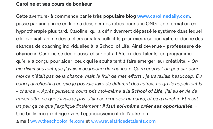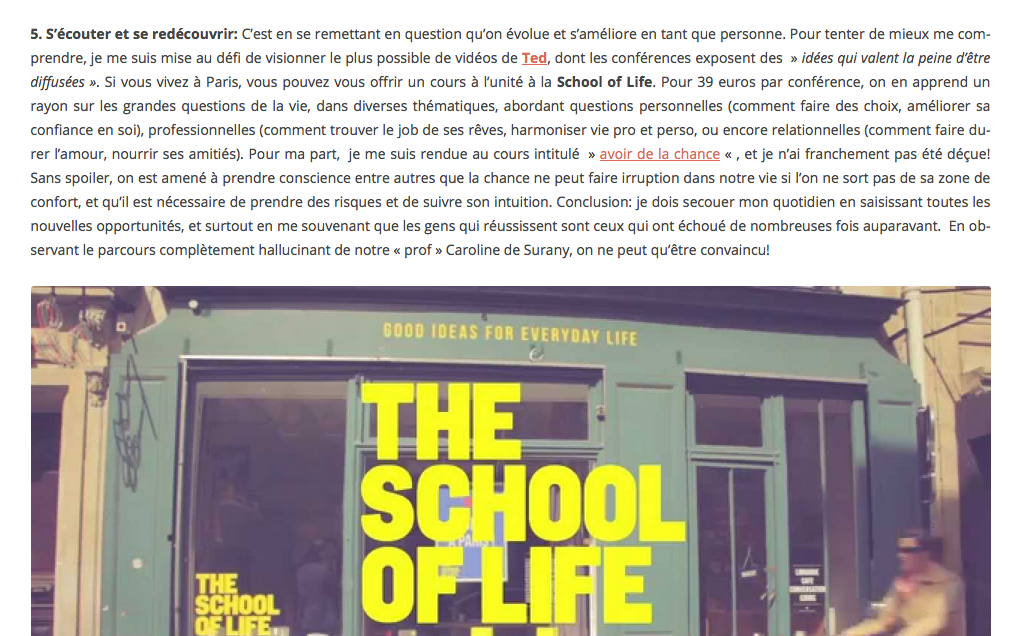 Mon cours de chance à la School of Life et petite interview sur Arte, émission Yourope